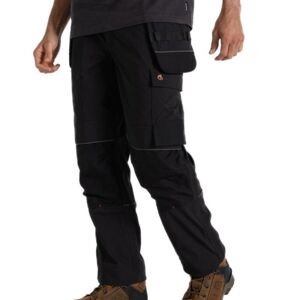 Part recycled polyamide elastane with H2OShield DWR finish, polyamide Cordura panels, Part recycled zip tapes, Water repellent with odour control patches, Sixteen pockets including three zipped and one credit card RFID, Knee pockets for knee protectors and removable holster pocket, Part elasticated waist at sides, Engineered fit with articulated knees and hammer loop, Reflective detail, Gusset, *Trim: 100% polyamide Cordura / Pocket bags: 65% polyester, 35% cotton